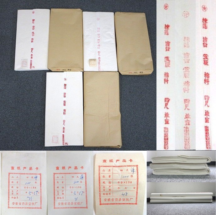 中国製 紅星牌 玉版 棉料 四尺 単宣 画仙紙 書道具 3反 証紙・包装紙有り 総重量:約7700g【説明欄に詳細写真有り】の出品です。