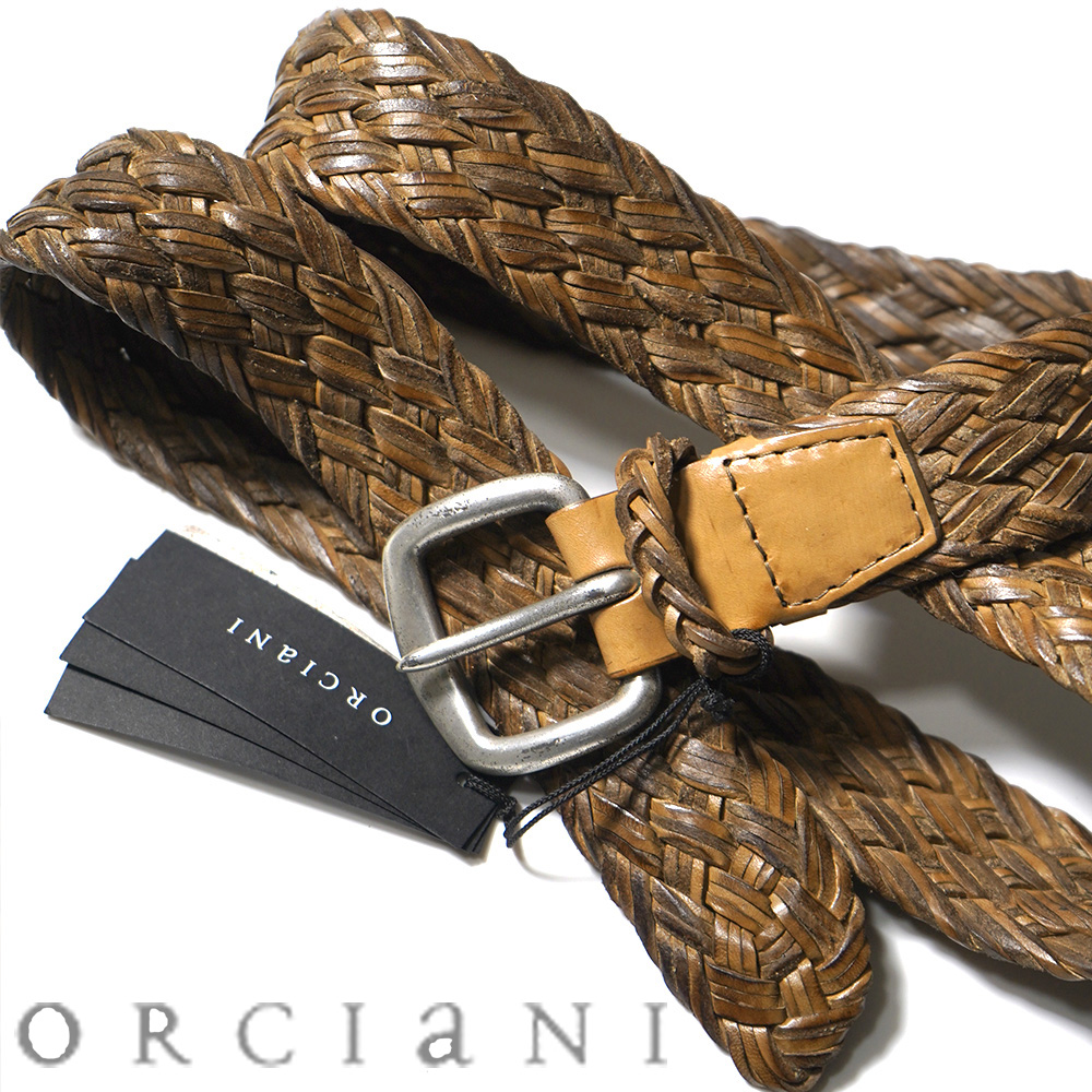 新品【オルチアーニ ORCIANI】イタリア製/ハンドメイド/編み込みレザーベルト105/ウエスト90-110㎝/2㎝刻み 收藏