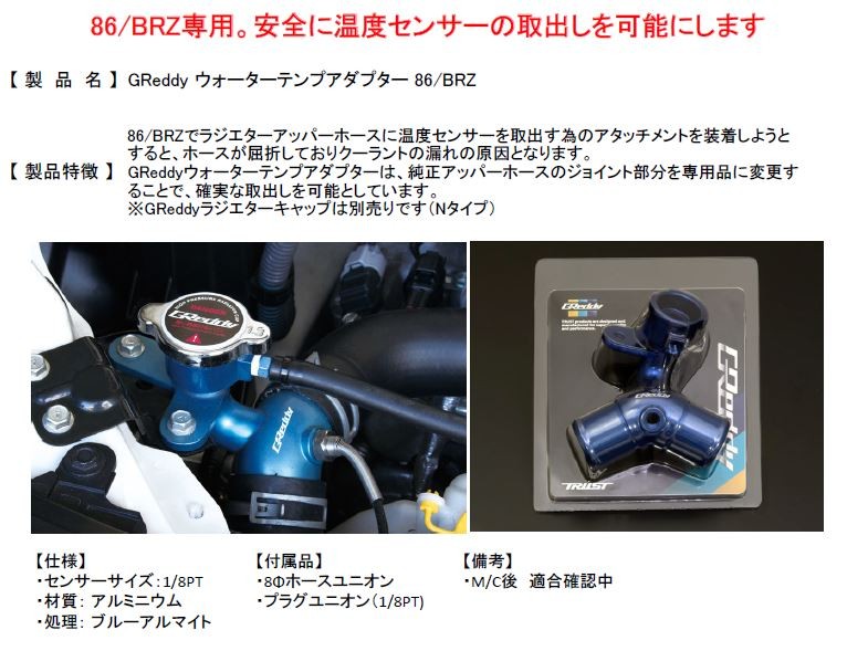 GReddy ウォーターテンプアダプター ZN6,ZN8/ZC6,ZC8用 FA20 |
