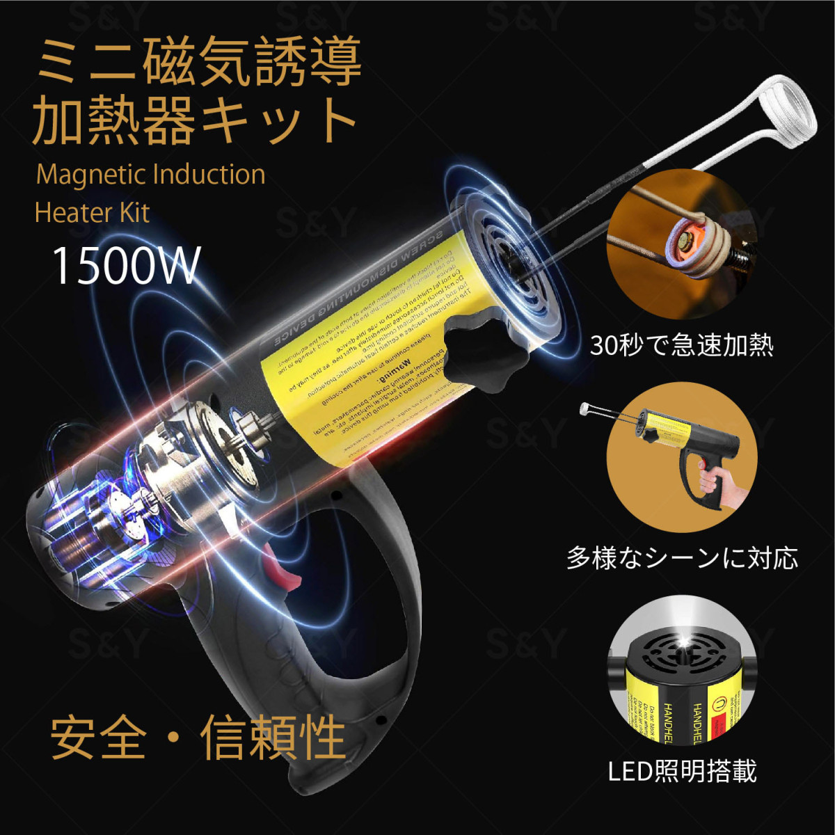 Kurfloミニ磁気誘導ヒーターキット 磁気誘導ヒーター 1500W 800℃高温対応 ハンドヘルド型 Φ25mm Φ30mm Φ45mm 收藏