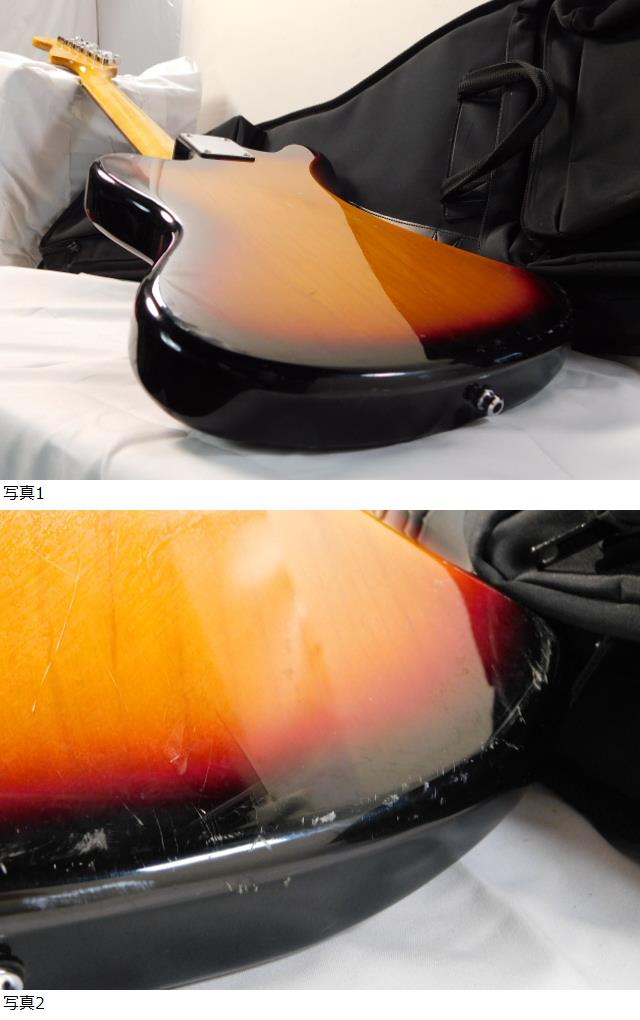 ・全体的にキズ、汚れ、塗装剥がれ、欠け、ホコリがあります。 ・ペグ、ブリッジ、ボディ裏側のプレートに緑青があります。 ・ピックアップセレクターが中に入り込んでいる感じでグラグラしています。