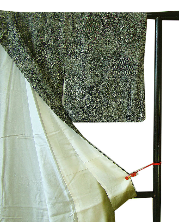 ※着る人や見る人を華やかなオーラで包む、「二代目更甚」作の洒落感高い小紋です。 お茶事や古典芸能、慶事の宴、観劇、街着、お式の付き添い等々 40代~70代迄幅広く着用出来ます。身長148cm~154cmの貴女に最適です。 |