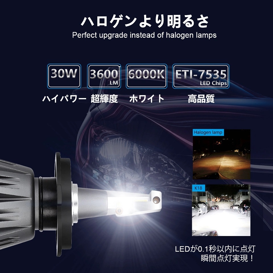 H4 LED ヘッドライト ファンレス Hi/Low 6000K 3600lm×2 DC12V 送料無料 收藏