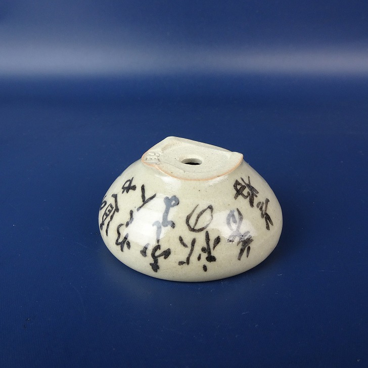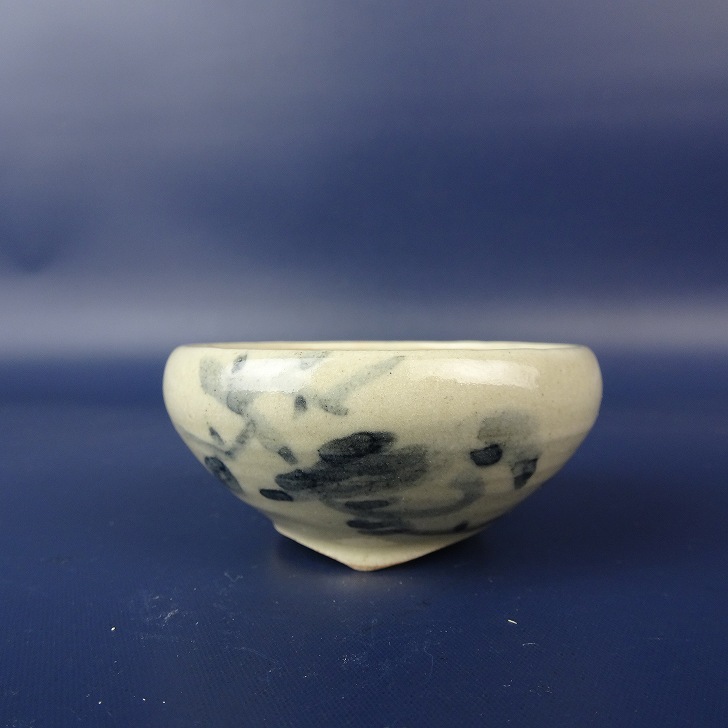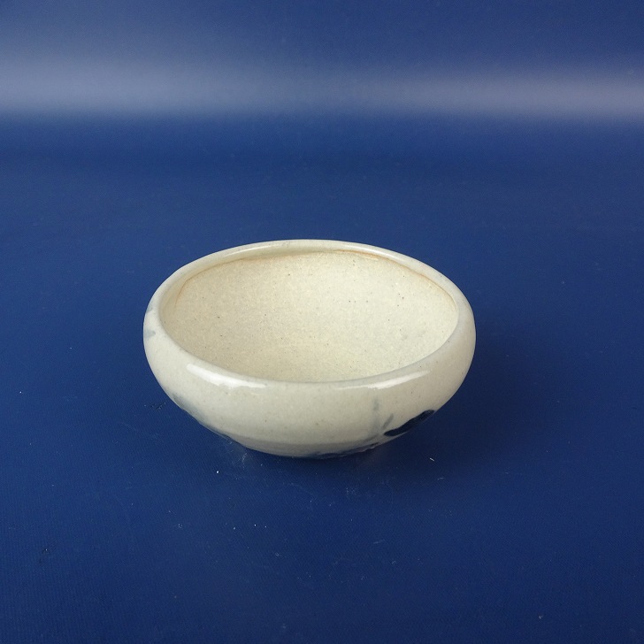 盆栽鉢 是好 矩 小鉢 長辺 約 6.3cm 丸鉢 色絵 雀 スズメ 柿 文字 鑑賞 観賞用 現品 新品 收藏