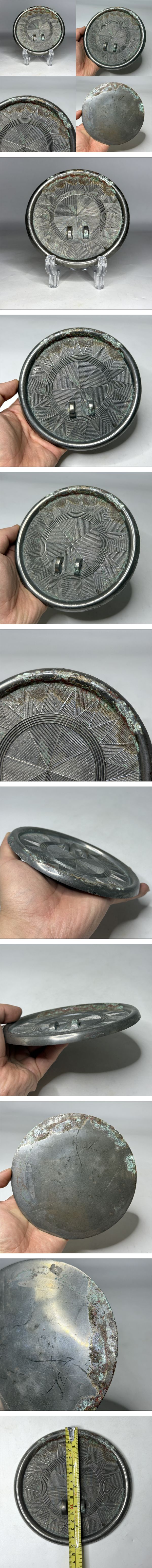 時代物 古銅幾何文鏡 直径約14.7cm(時代物 朝鮮 高麗 李朝 鏡 金銅 仏教美術 唐物 中国美術 骨董品) 收藏