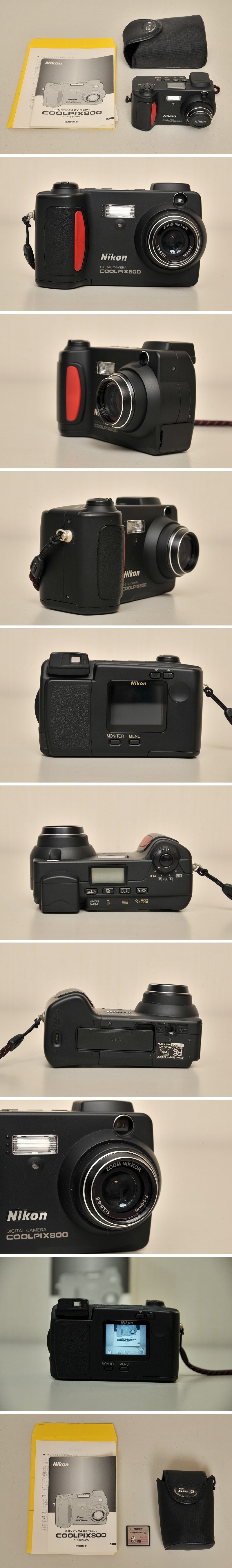 | 「Nikon」のデジタルカメラ 中古品です。 ※1枚目の画像が出品の全てです。※ ◇Nikon COOLPIX 800 ◇型式:E800 ◇付属品:取扱説明書、ストラップ、レンズキャップ、ソフトケース、CFカード 〇画素数は211万画素で現在の水準からすれば低スペックですがその代わり画像 データサイズも小さく収まりますしNIKKORレンズを搭載しているため、描写に 関しては侮れない部分があるかと思います。(あくまでの個人の感想です。) この機種は単三アルカリ電池4本で動作しますので重宝する存在だと思います。 ・2000年6月に購入したワンオーナー品になります。出品前に試し撮りしてみましたが 問題はありませんでした。CFカードの内容は初期化しています。 ・外観に特に目立つキズ、破損等は見当たりません。キレイな状態だと思います。 ・ソフトケースには経年劣化でホツレ、スレが見られます。 ・出品前まで保護レンズを装着していましたのでレンズ表面の状態は良いのでは ないかと思います。 ・付属品は画像にある物のみになります。 出品時は問題ありませんでしたが25年前の品物になりますので到着時の動作補償 出来ません。ご了解の上、入札して下さい。 画像で判断頂ける方で、現状で構わない方の入札をお願いします。 かなり古い品物ですので状態に神経質な方は入札をご遠慮下さい。 ※評価新規の方は先に質問欄から購入意志のご連絡をお願いします。 先にいただけない場合は入札を取り消しますのでご了承下さい。 ・状態に神経質な方の入札はご遠慮ください。 ・入札後の取り消し依頼はお受けしませんのでよくご検討の上、ご入札お願いします。 ・新規の方、悪い評価の多い方、こちらの判断で取り消します。ご了承下さい。 新規の方は質問からご連絡下さい。 ・画像で判断出来る方の入札をお願いします。 ・ご質問は終了日前日までにお願いします。 ご質問の回答には時間をいただく場合があります。 ノークレーム、ノーリターンをご了解の上、入札をお願いします。 | ||