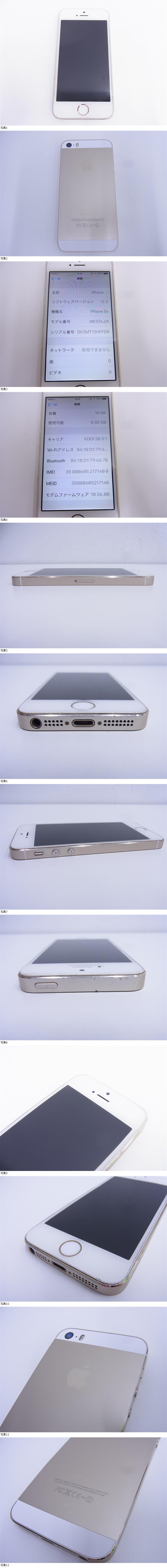 ①モバイル祭 iPhone 5s ME334J/A 16GB IMEI:35 880605 217140 0 判定○ SIMロック不明 ゴールド×ホワイト 白 アイフォン 中古品 收藏