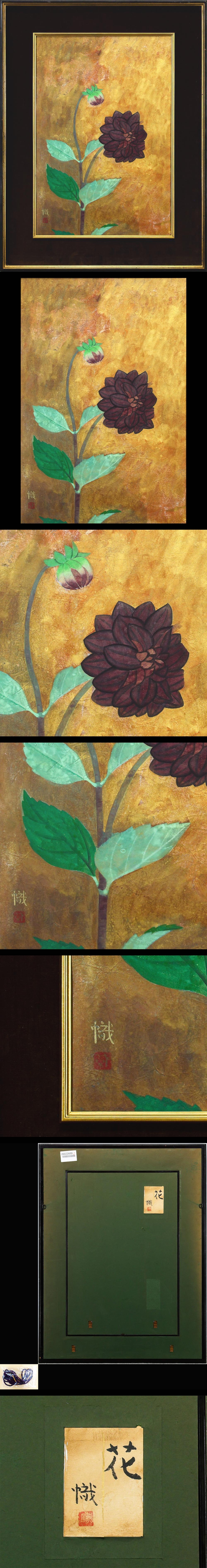 【真作】【WISH】尾山幟「花」日本画 12号 大作 金落款 金箔・金泥仕様 共シール 〇日展評議員 師:中村岳陵 遊ぶ鳥 #26022600 收藏