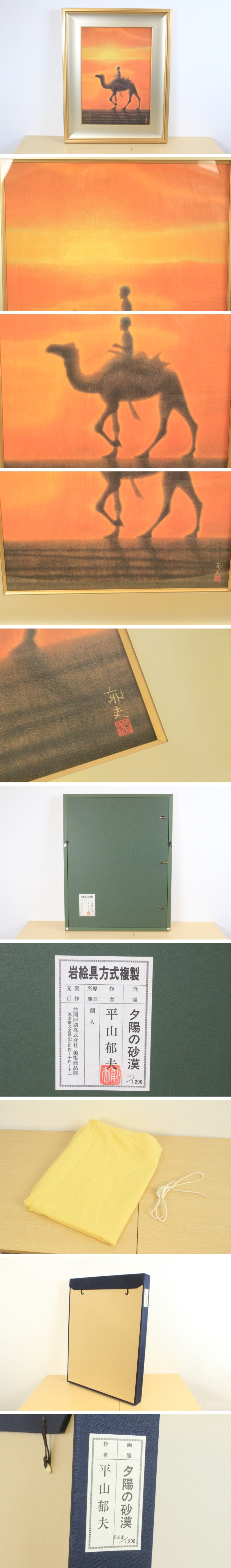 平山郁夫 『夕陽の砂漠』 岩絵具方式複製 絵画 風景画 古美術品 骨董品 限定 額装 幅:約56×71cm タトウ箱 8282kcz 收藏