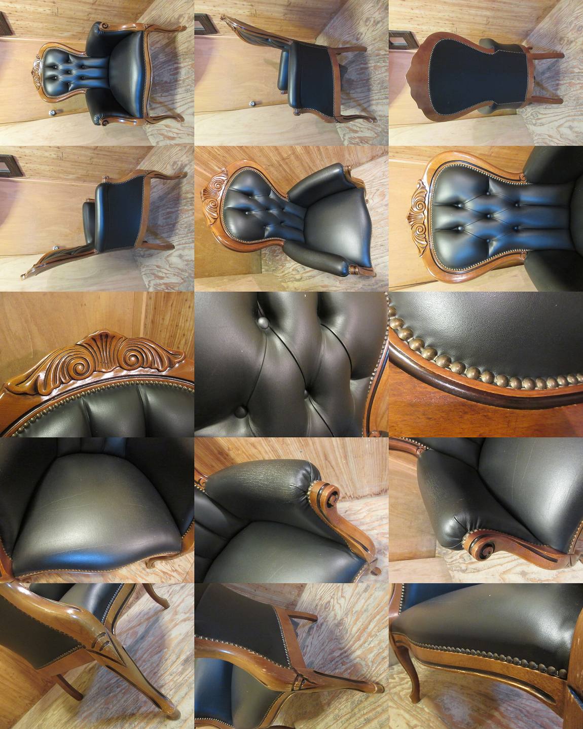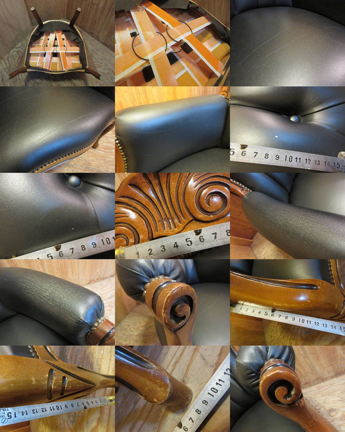 D1621★ハイバックチェア■アームチェア■1Pソファ■鋲打ち■猫脚■彫刻■ソファ■椅子■中古品 收藏