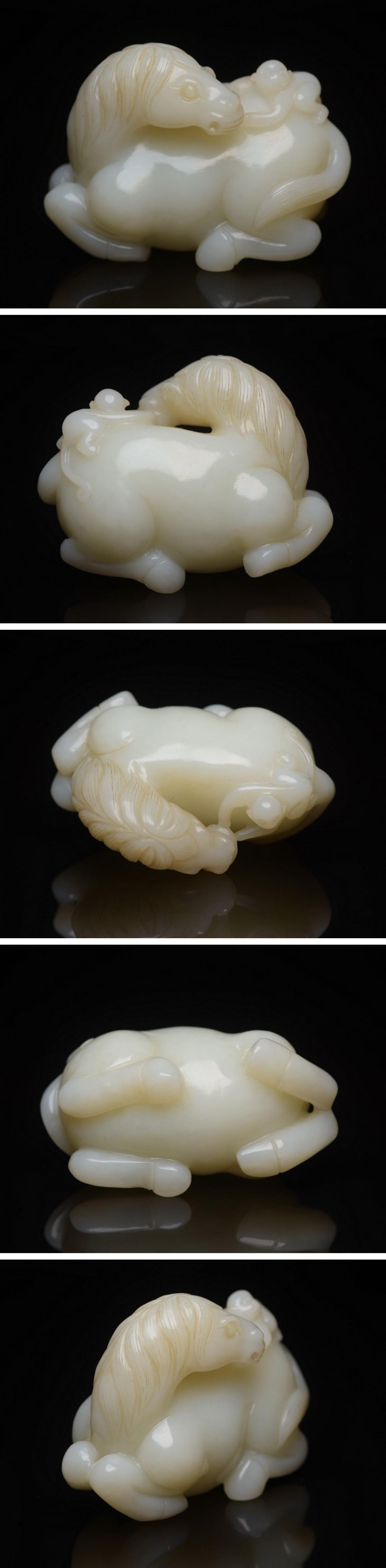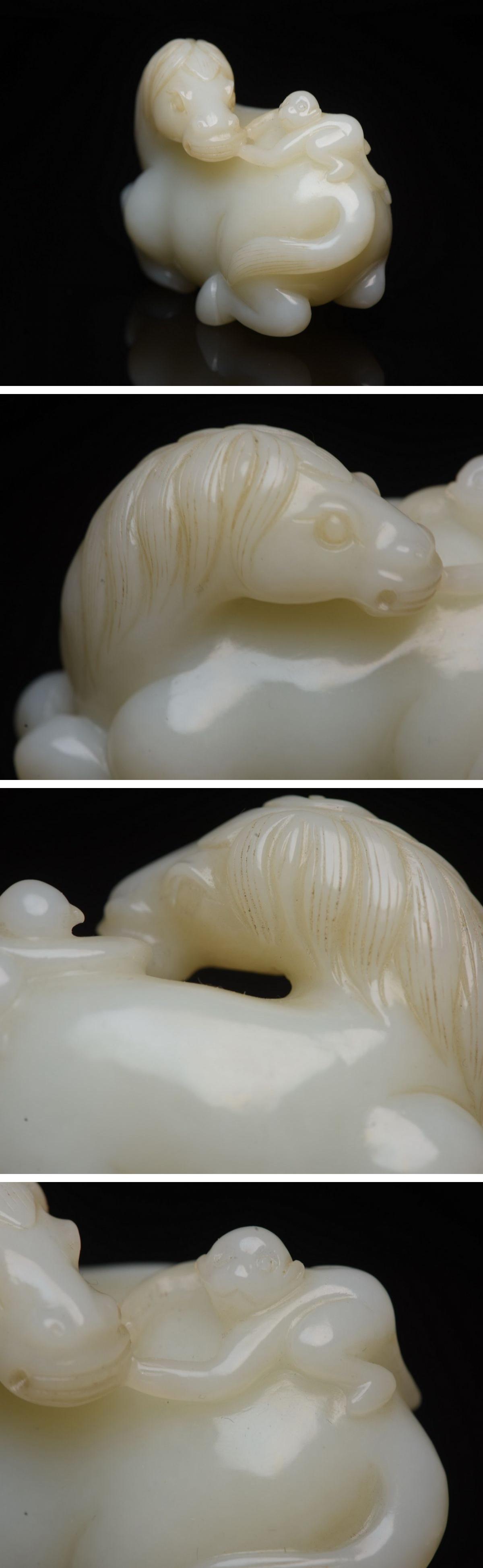 【雲錦】1円から 清時代 和田玉 玉馬文根付 装身具 材質保証 時代物保証 古美術 骨董品8L24-2S5