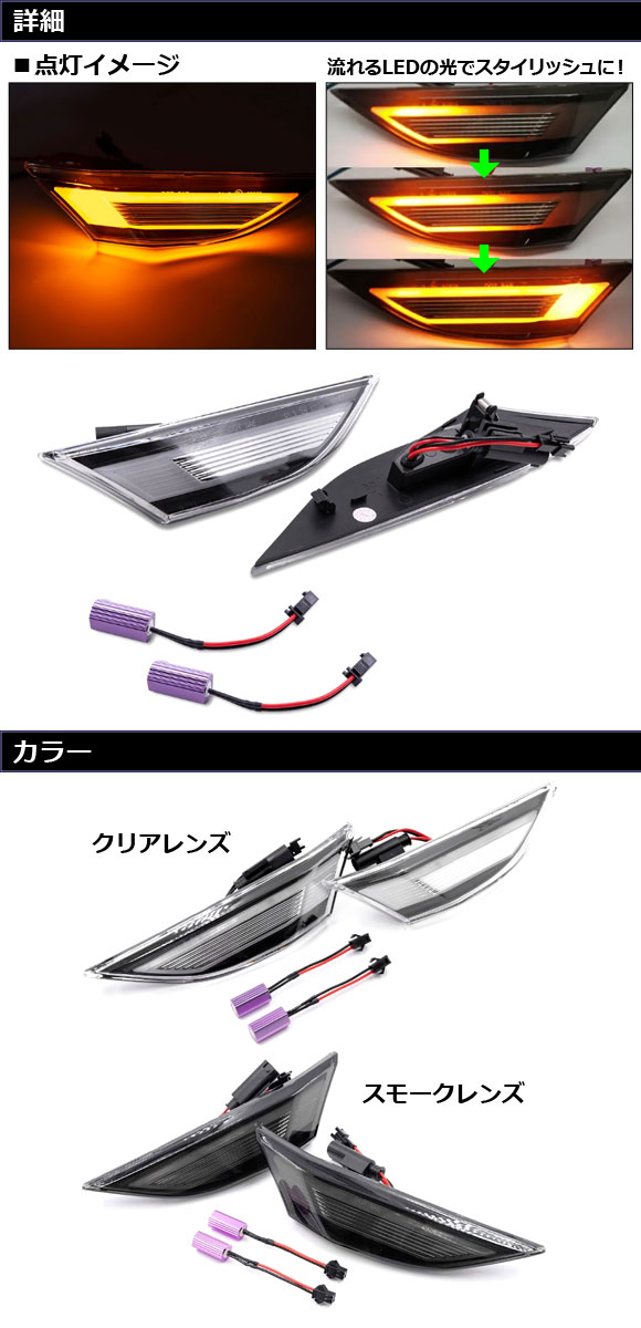 LED流れるサイドマーカー ポルシェ ケイマン 981 2012年12月~2016年04月 スモークレンズ 入数:1セット(左右) AP-LL611-SM 收藏