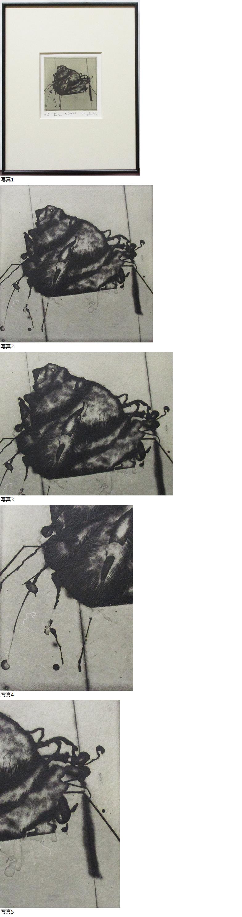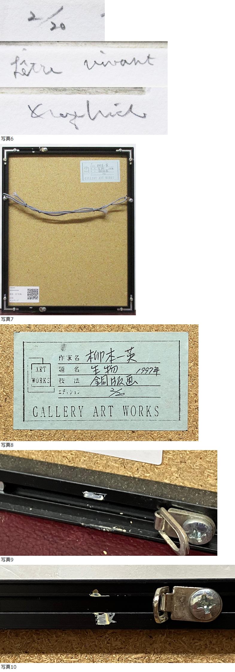 柳本一英『生物』銅版画 ed.2/20. 鉛筆サイン 額、箱付き 1997年制作 GALLERY ART WORKSシール 收藏