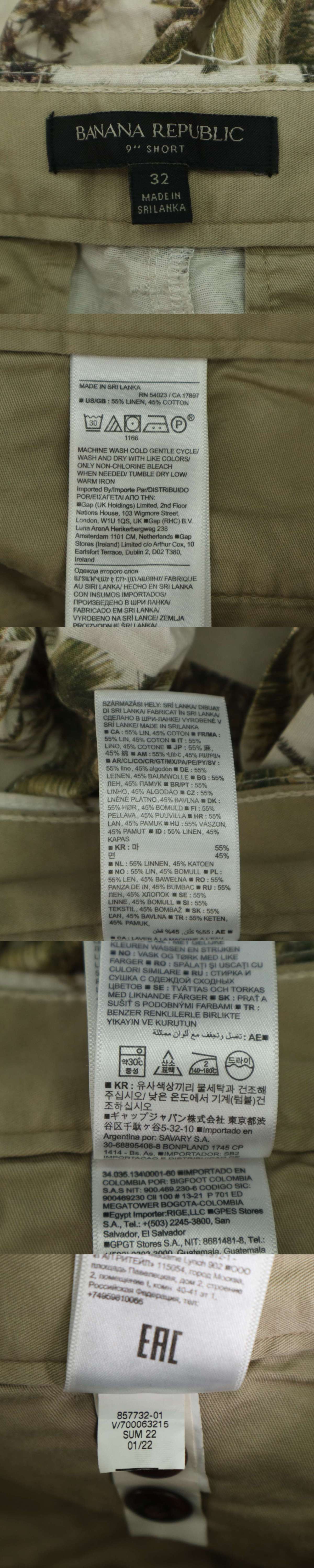 Banana Republic バナナリパブリック 春夏★ リネン ヤシの木柄 トロピカル ショート パンツ Sz.32 メンズ 收藏