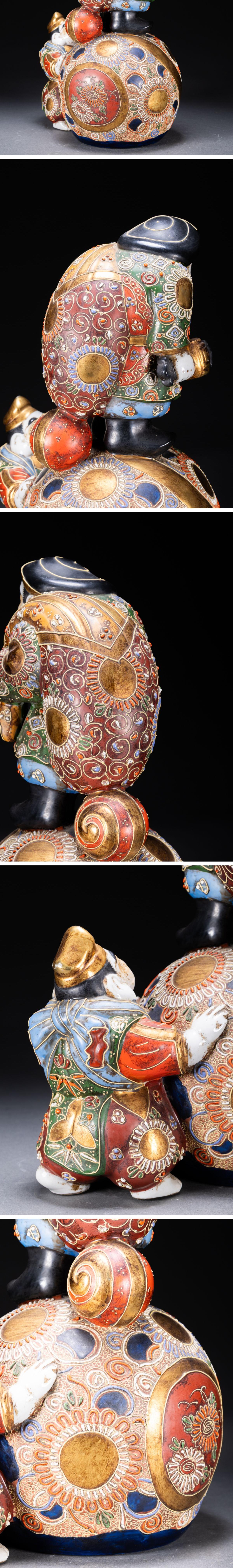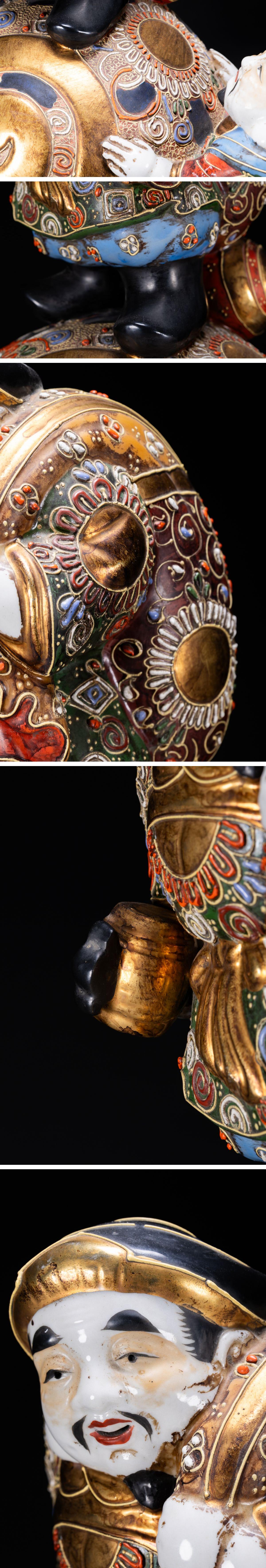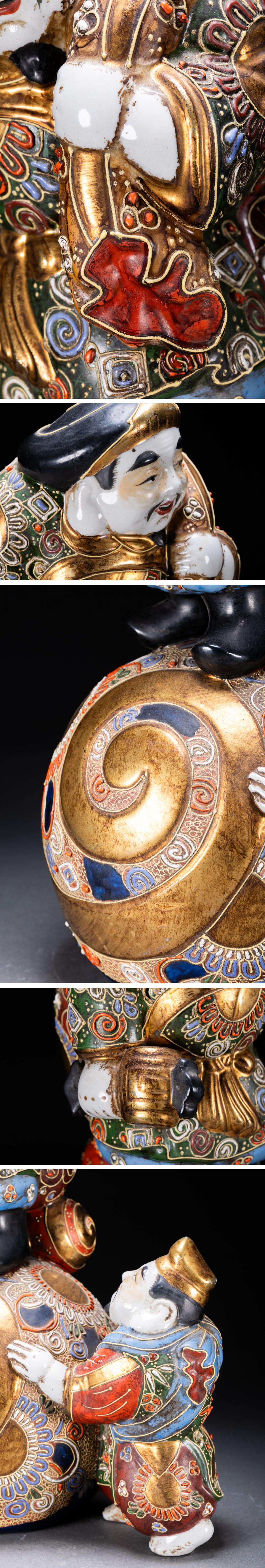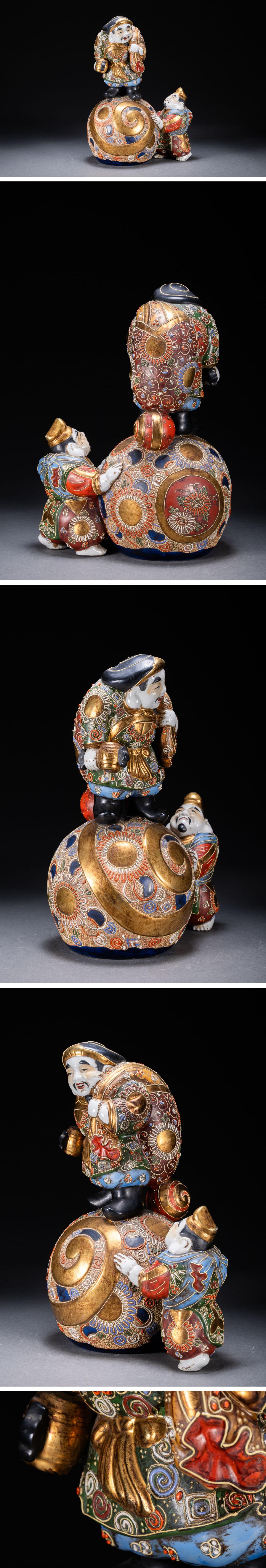 【清】関西某オークション購入 時代物 九谷焼 金襴手 大黒天・恵比寿造像 極細工 古置物 古擺件 古美術1125-54S1