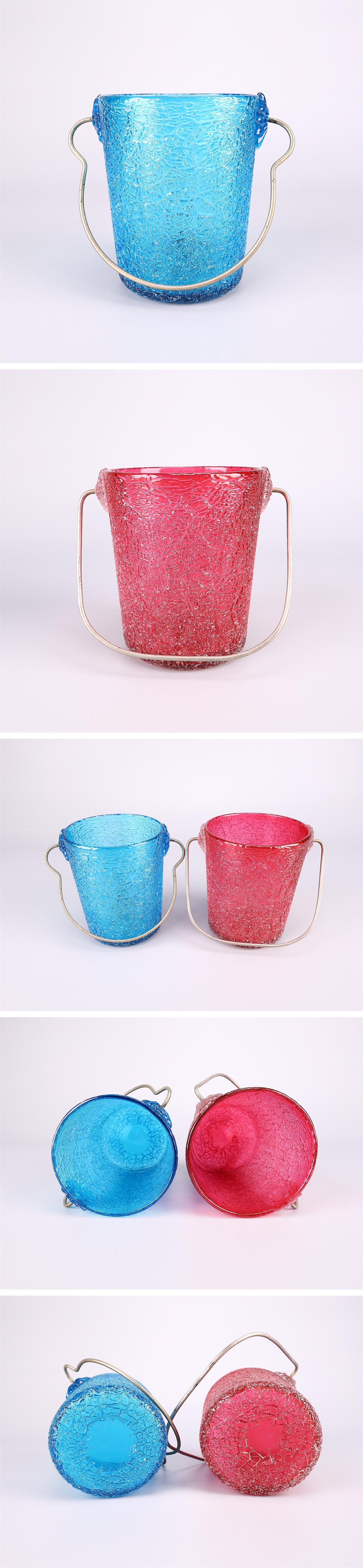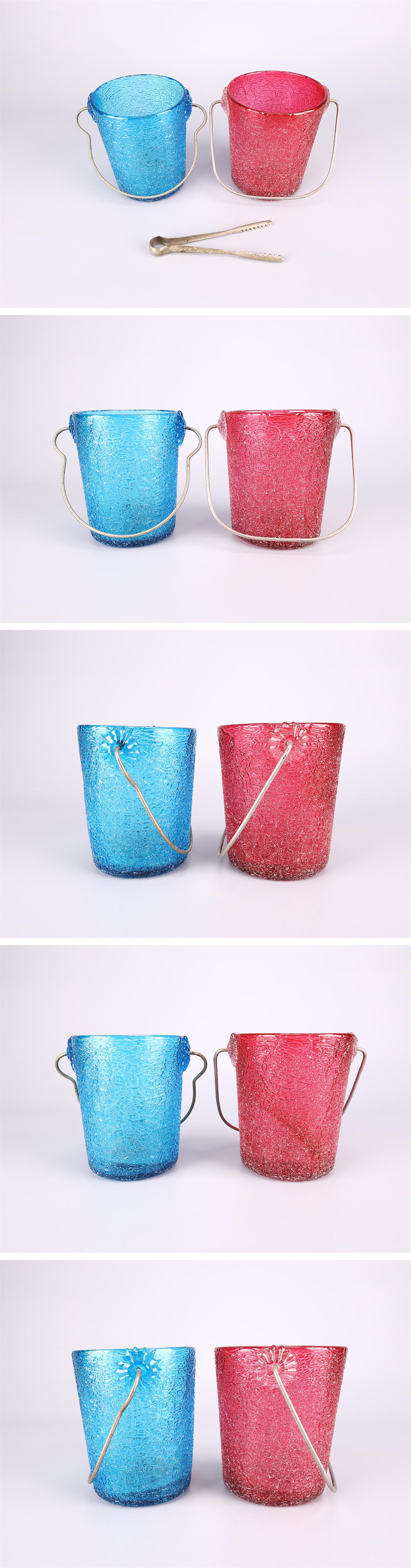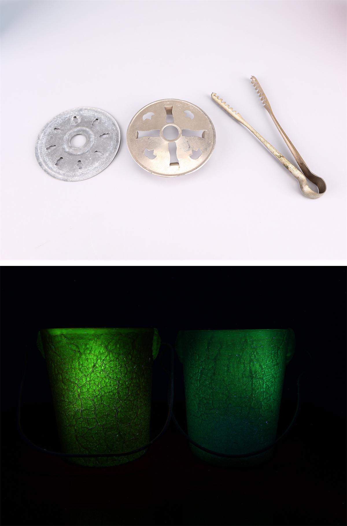 【吉】PD535 大正昭和期 【ウランガラス】 赤ガラス青ガラス 氷裂岩肌紋 アイスペール 氷ポット 2点 一対 收藏