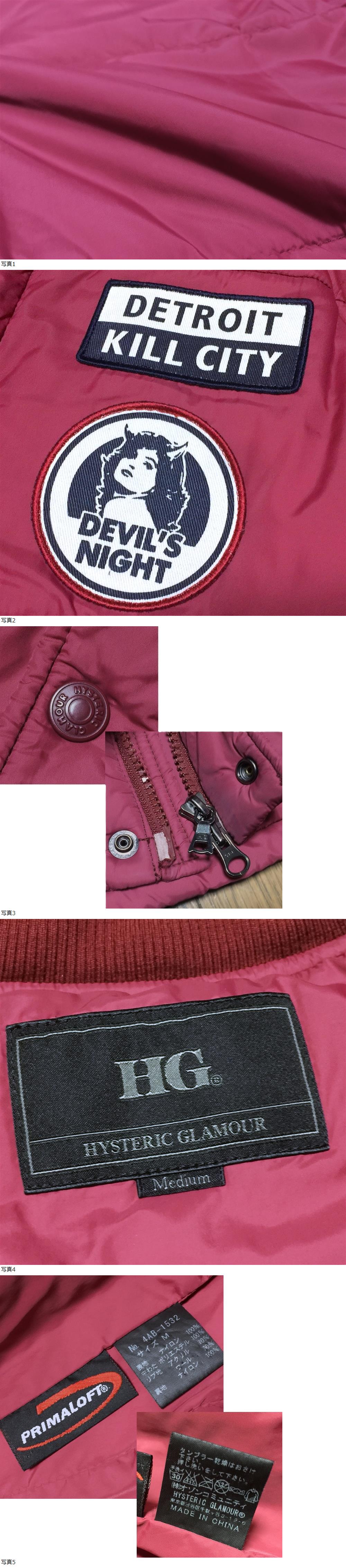 HG HYSTERIC GLAMOUR ヒステリックグラマー 名作 DETROIT KILL CITY デビルガールワッペン PRIMALOFT 中綿 レーシング ジャケット M ワイン 收藏