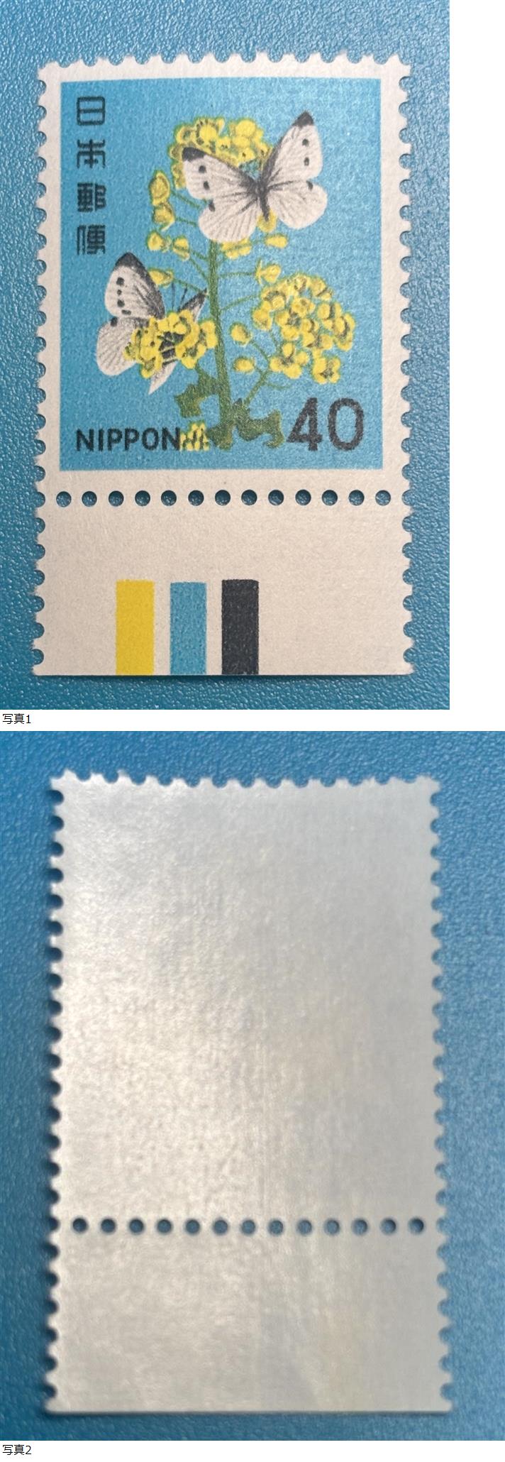 新動植物国宝図案切手【アブラナとモンシロチョウ】カラーマーク下 40円 未使用 NH美品 まとめてお取引可