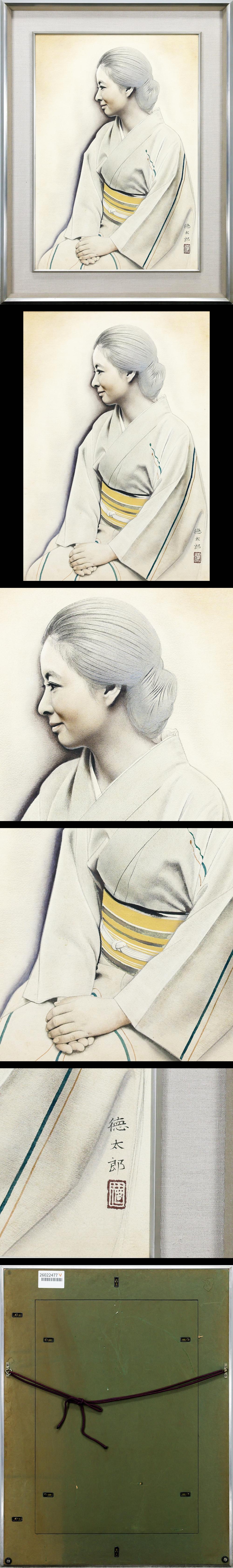 【真作】【WISH】玉井徳太郎 日本画 10号 金泥 ◆柔らかな微笑みの和美人 〇人気写実挿絵画家 師:結城素明 「万葉姉妹」ほか #26022477 收藏