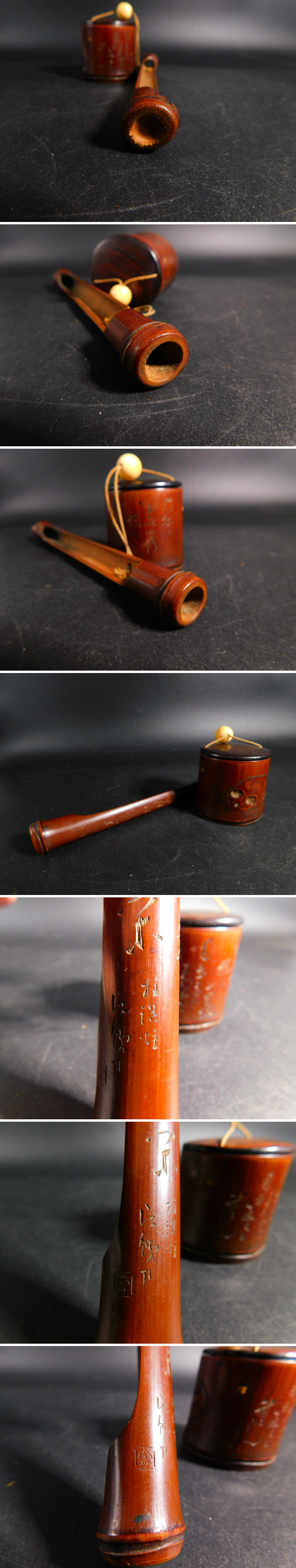 在銘 彫刻家 池田片銕 竹彫り 提げ物 煙草入れ 煙管筒 骸骨 野ざらし 一休宗純 門松は冥土の旅の一里塚 福井県武生 師 池田蕙斎 收藏