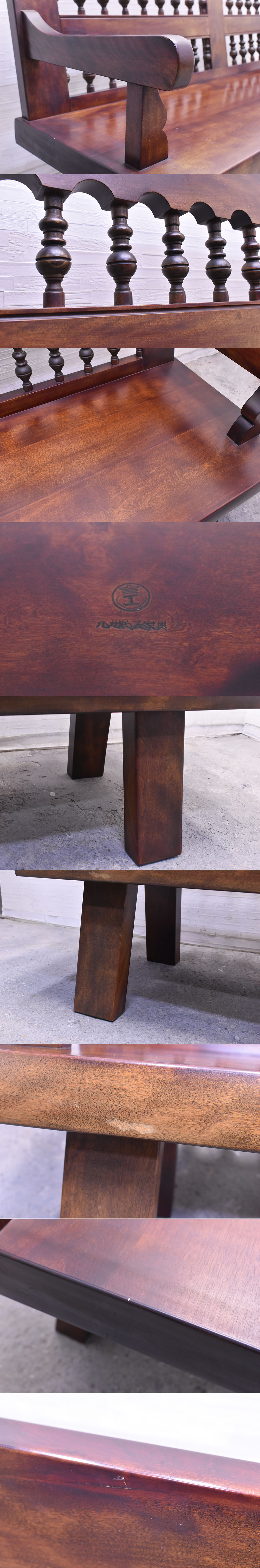 ☆九州民芸家具/スピンドルバックベンチ/高級/ミズメザクラ材/3人掛け/長椅子/肘掛け/アームチェア/椅子/木製/T26PE1200 收藏