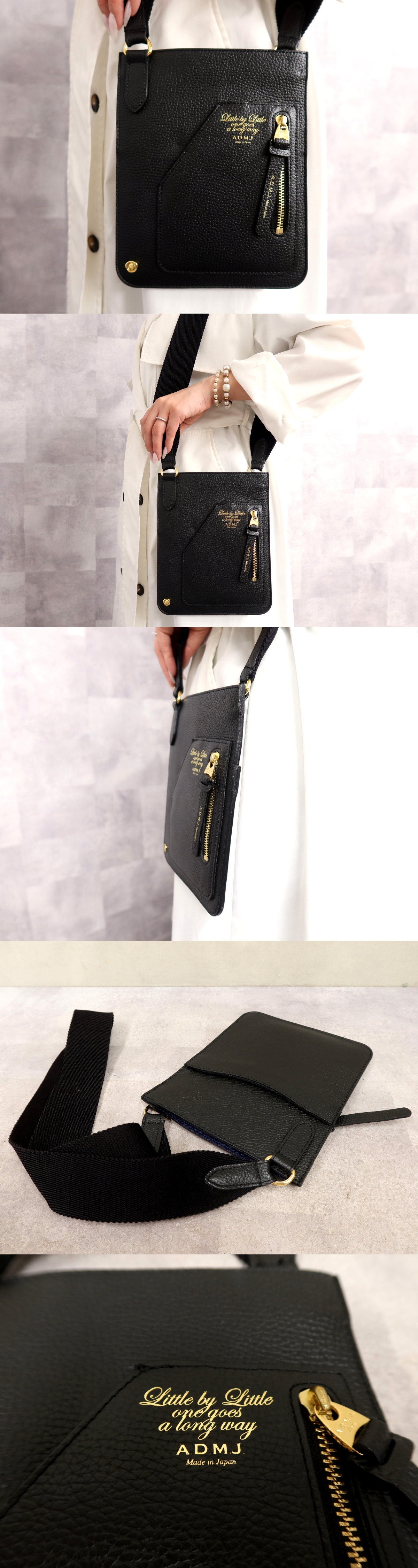 ●超美品●新品同様●A.D.M.J エーディーエムジェイ●カーフ レザー 本革●ガジェットホルダー ショルダー バッグ●黒●G金具●Js66956 收藏