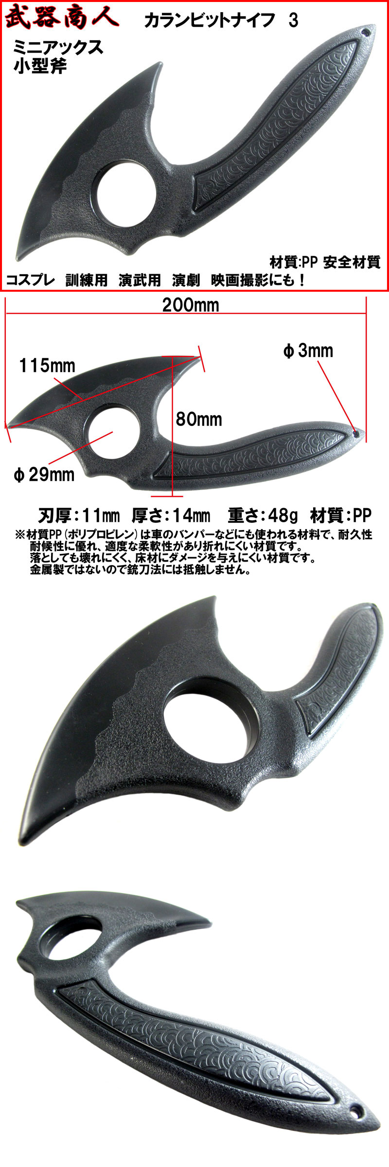 【さくら造形 KN413S】カランビット TYPE3 ミニアクスタイプ 1本 近接格闘術 訓練用 材質PPなので安全 所持制限なし コスプレ 演舞 n2ib 收藏