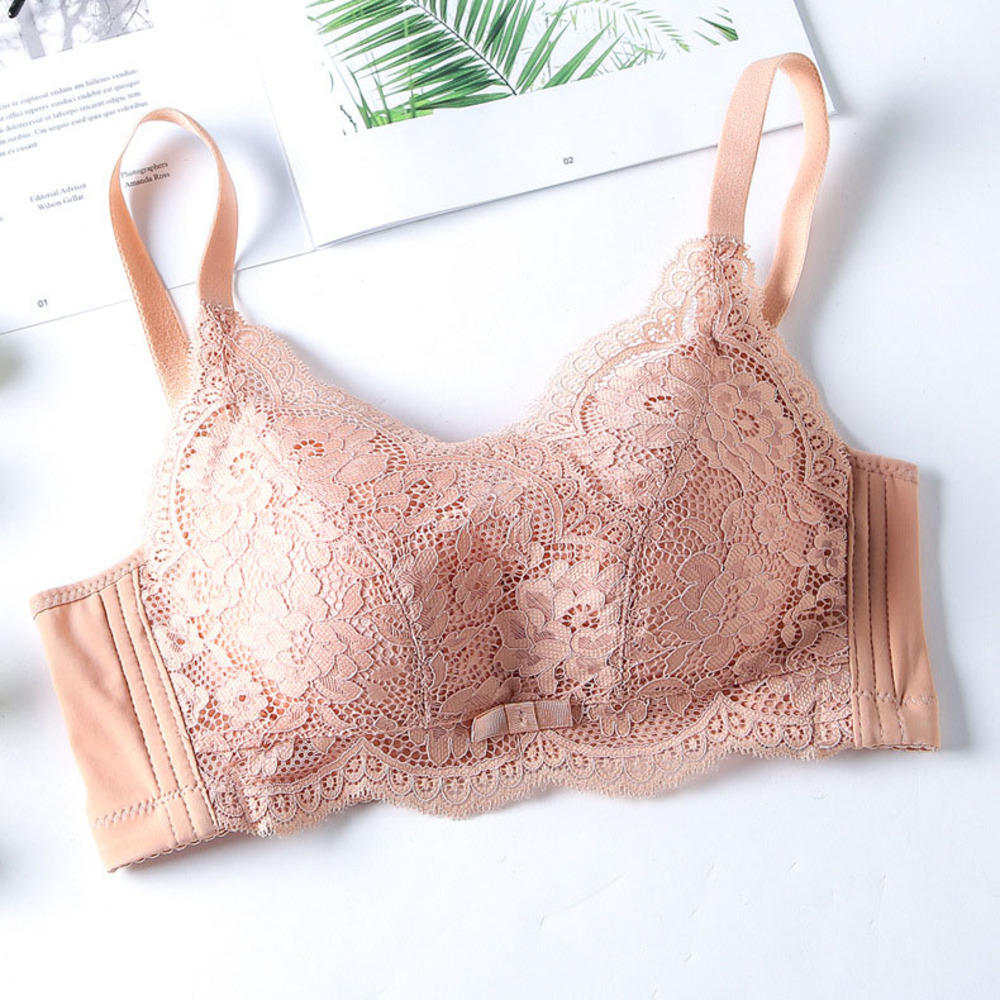☆ ベージュ×ピンク ☆ 32/70AB ☆ ブラジャー pmybra1212 フルカップブラ ノンワイヤー レース ブラジャー ブラ ノンワイヤーブラ 盛れる 收藏