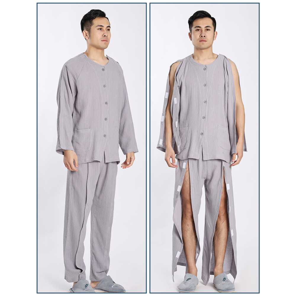 ☆ グレー×メンズ ☆ XXL ☆ 介護パジャマ 上下セット 面ファスナー ガーゼ 介護パジャマ フルオープン ねまき 收藏