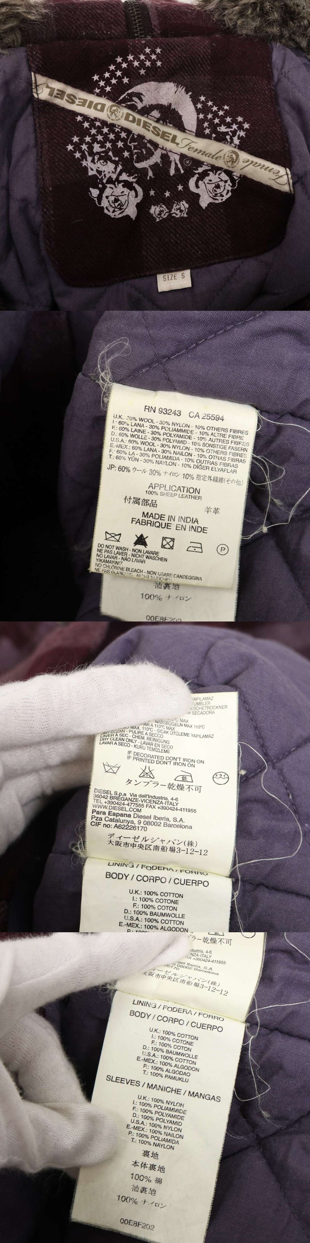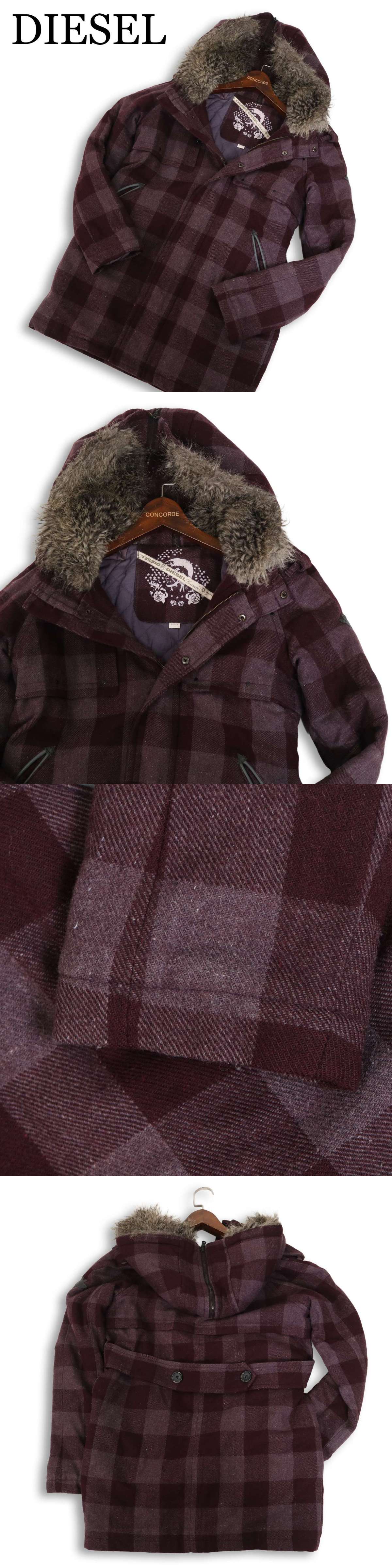 DIESEL ディーゼル 秋冬 ファー★ ブロックチェック ウール ミリタリー ダッフル コート Sz.S メンズ 收藏