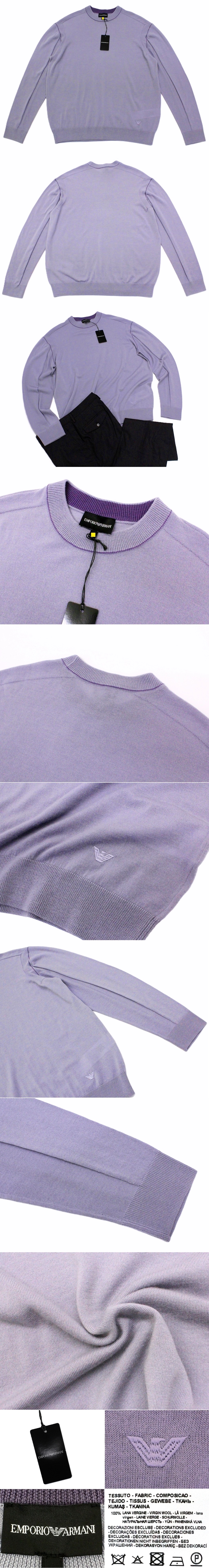 ●7万新品◆M◆EMPORIO ARMANI アルマーニ◆ヴァージンウール100% 薄手クルーネックニットセーター パープル薄紫 1円 收藏