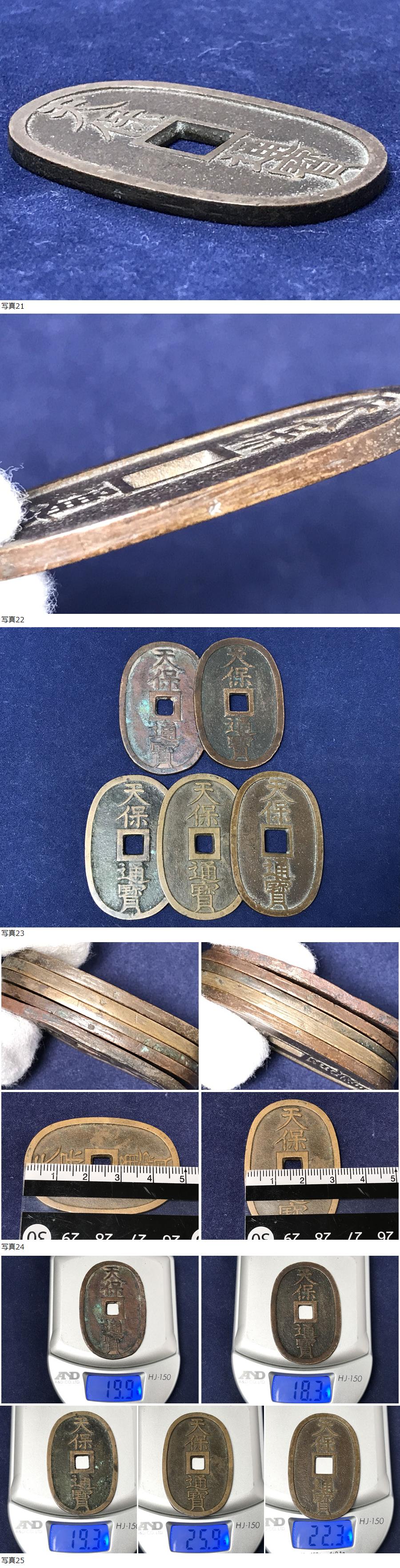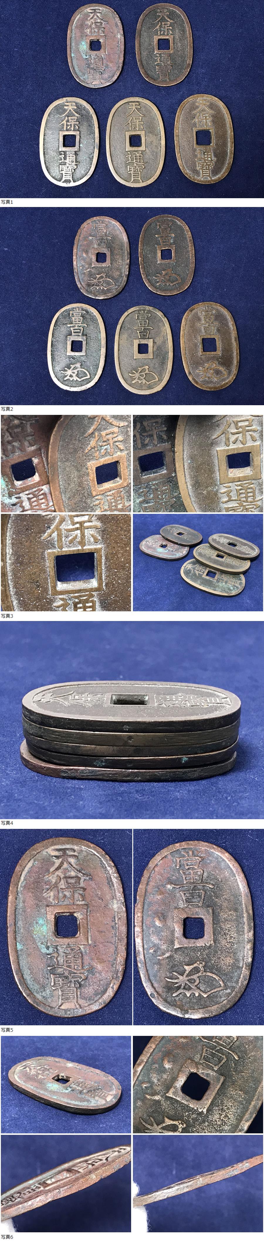 ◆天保通宝 5枚 重量 25.9g 22.3g 19.9g 19.3g 18.3g天保通寳 當百 銅銭 穴銭 母銭 子銭 日本 古銭 アンティーク コレクション 16-12 收藏