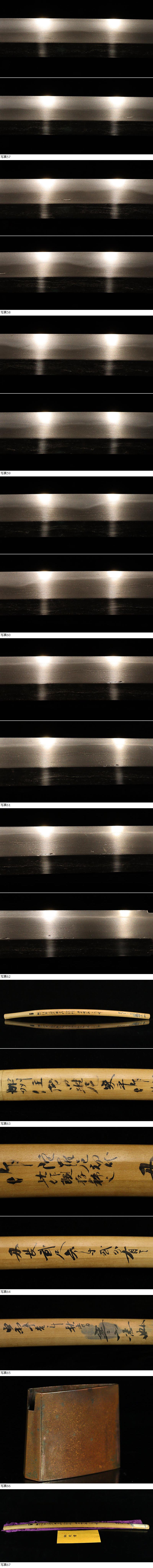 | ■刀剣のサイズ表示について 元幅・・・焼出し付近を測定しております 先幅・・・横手筋付近を測定しております 元重ね・・・焼出し付近の厚みを測定しております 先重ね・・・横手付近の厚みを測定しております (多少の誤差はご容赦ねがいます) ■銃砲類のサイズ表示について 全長・・・銃身先から台木尻までを測定しております 銃身・・・台木を除いて金属部分を測定しております (多少の誤差はご容赦ねがいます) 当社が出品する刀剣類は、入手した時の状態のまま出品しております。 ハバキ、小道具等も当社で調整したり付け替えたりはしておりませんので、合わせではないかというクレームは一切受け付けません。 刀身の疵も隠すことなく載せておりますので写真をよくご覧になってご入札ください。 疵に関して、説明がない等のクレームは一切受け付けません。 写真ではわかりにくい部分は質問欄やお電話でお問い合わせください。 但し、説明欄に表記のない刃切れに関してのみ返品やご相談に応じます。 ※ご落札しご購入されお手元に届いてから20日以内に 登録証に記載されている各都道府県の教育委員会にご連絡し 登録証の所有者変更を必ず行ってください | |||