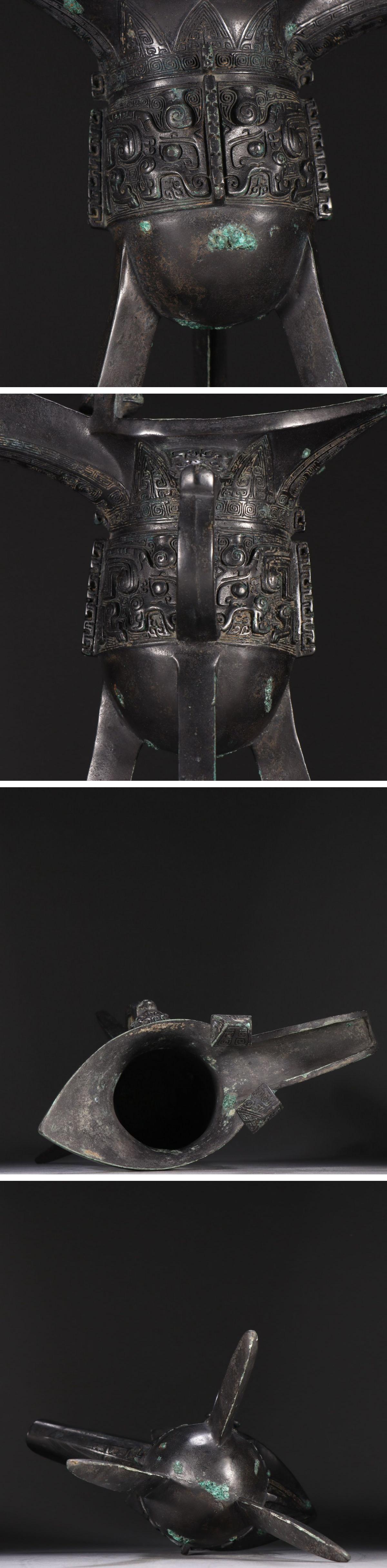 【清】関西某オークション購入 中国伝来 戦漢時代物 青銅器 青銅爵杯 在当時物 時代コレクション8L1-AM7