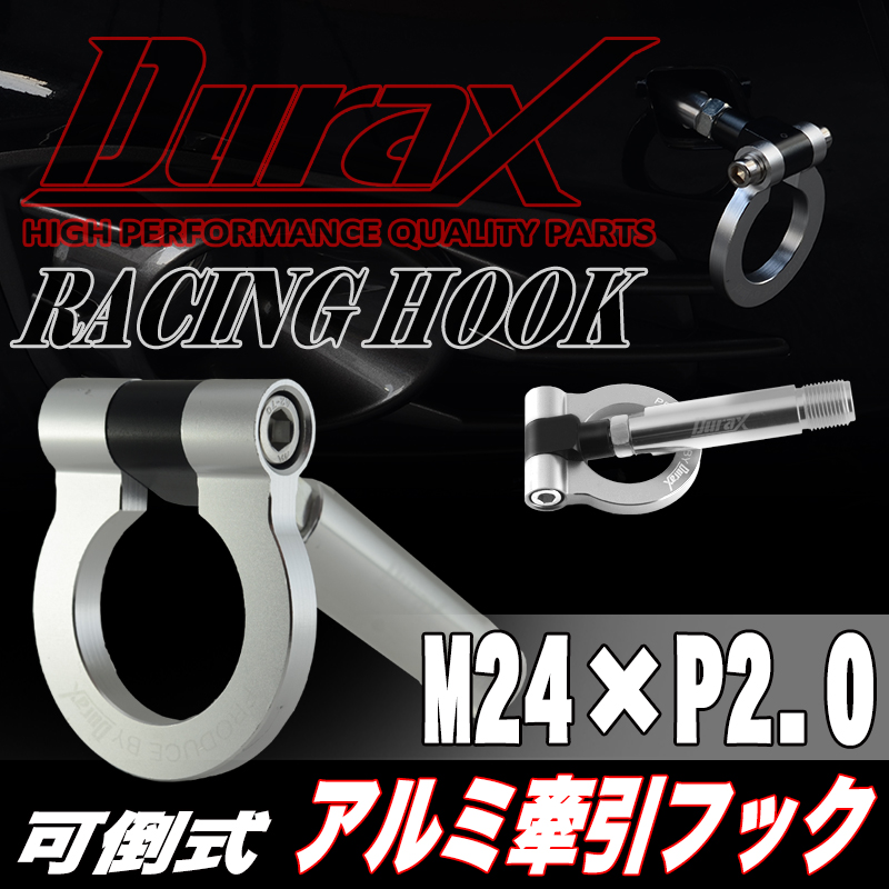 DURAX正規品 シルバー 銀 けん引 フック 汎用 牽引フック トーイングフック M24×P2.0 可倒式 脱着式 折りたたみ式 軽量 ドレスアップ 收藏