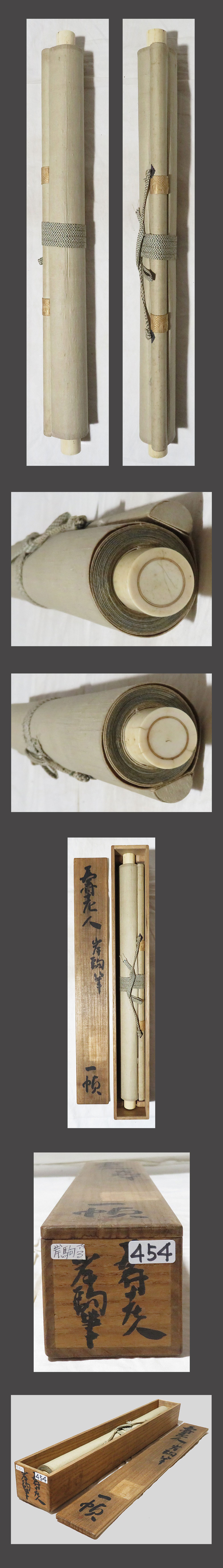 ・掛軸の軸先ですが、細心の注意を払って梱包しておりますが、 配送中の振動・気温・経年劣化等で外れてしまうことがあります。 軸先の外れは、破損ではございませんので、返品の対象にはなりません。 大変お手数ですが、お客様ご自身での修復をお願い致します。 ・添付写真の画像と説明文でご理解頂ける方、ご入札を宜しくお願い致します。 ・添付写真の画像は撮影の光度により、現物と若干の色合いの相違が生じる事があります。 ・添付写真の画像は受取完了のご連絡を頂いた後に速やかに消去しますのでご了承下さい。 ・土・日・祝日はお休みさせて頂きますので、商品発送は、月曜日以降になります。 ・祝日の場合は、翌日の平日以降の発送になります。 ・土・日・祝日は、メールの返信が若干遅れる事がございます。どうか、ご了承下さい。 ・時間的に余裕がない場合などでお答えが出来ない事も多々有ります。 ご不明な点は落札日前日までに早めにご質問下さい。 ・商品トラブルがあった場合は、直ちにご連絡下さい。 お取引に付きましては迅速・丁寧に対応させて頂きます。 ・落札後、できるだけ2日以内に連絡(返信)を頂ける方、 5日以内にご入金できる方の御入札を御願い致します。 ・新規の方や評価の総評が悪い方は当方の判断にて、入札取り消しを行う場合がございます。 ・お取引に付きましては、迅速、丁寧に対応致しますのでどうぞ、宜しくお願い致します。 ・古美術品や古物や古書画の出品が多いため、神経質な方がご入札される場合は、 ご自身が納得の行く価格でご入札ください。 ・万一、ヤフーのシステム障害により、公正なオークションができなかったまま終了し、 落札者様にご落札された場合は、当方より取引ナビで取引中止のご連絡を致します。 その時は、どうか、ご了承をお願い致します。 ・終了当日・直前の入札の取り消しは、 トラブルの原因となりますのでご遠慮お願い致します。 ・入札後の取り消し(キャンセル)は行っておりません。 ・落札後のキャンセル・返品はお断りしてます。 入札前によくご確認頂き、間違いのないようにご注意下さい。 |