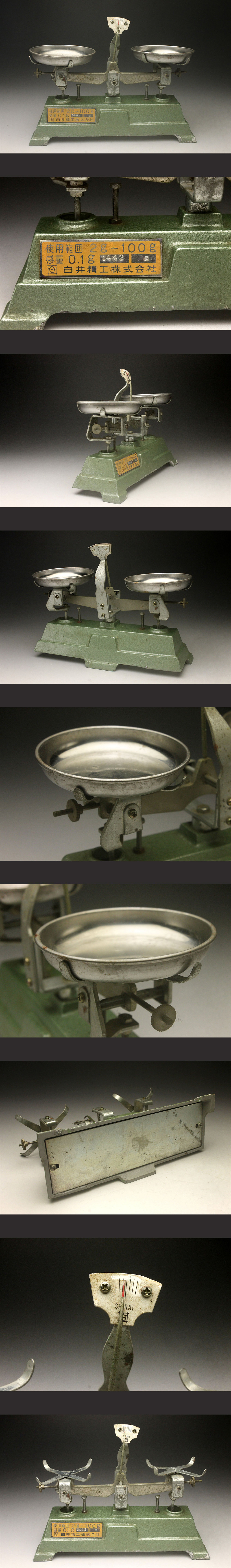 【余韻】 昭和レトロ 白井精工 上皿天秤 秤量100g 感量0.1g 当時物 精密秤 茶道具 計量器 アンティーク 骨董 古道具(検:科学 什器)<同