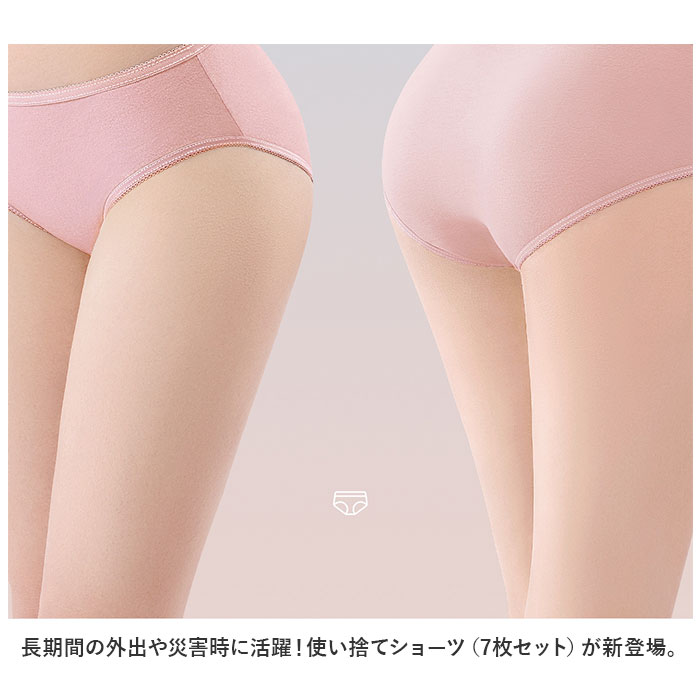 | 商品説明 | ・・長期間の外出や災害時に活躍!使い捨てショーツ(7枚セット)が新登場。 ・【便利な使い捨てタイプ】 ・旅行や出張、入院など長期間の外出で洗濯ができない時に♪着用済みのショーツをそのまま持ち歩く必要なし! ・【お肌に優しい生地感】 ・毛羽立ちが少なく丈夫な綿コーマを使用。柔らかく優しい肌触りで、安心して使えるショーツ。 ・【汗ばむ季節も快適】 ・通気性にも優れており、汗をかいてもムレにくい♪ ・【優しくサポート】 ・お尻まわりをしっかり包み込んでくれる深ばきタイプ。いや~な食い込みやズレをガード! ・【いざという時の備えに】 ・・1つずつ個包装されていて衛生的◎防災グッズにリストアップしておくのもおすすめ。 ・【1週間使える7枚セット】 ・カラフルタイプと、シンプルなホワイトタイプ。お好みでチョイスして♪ |
