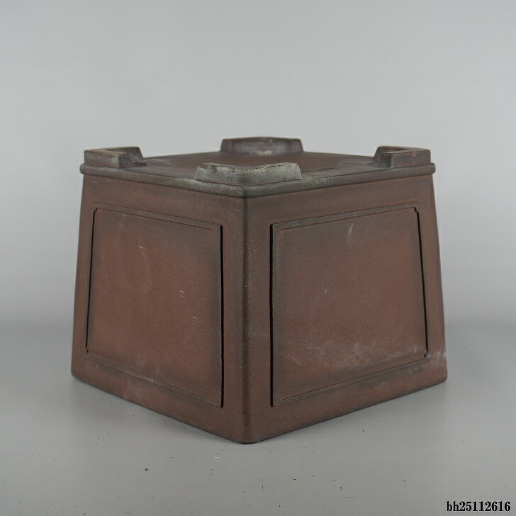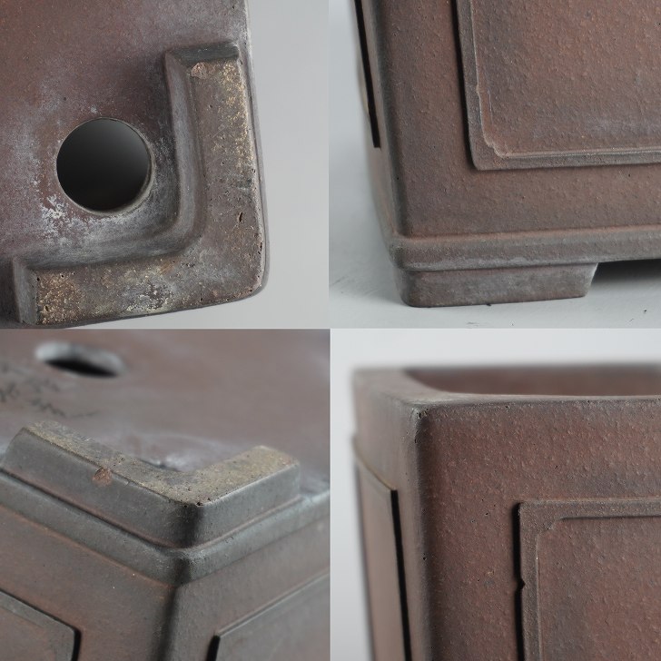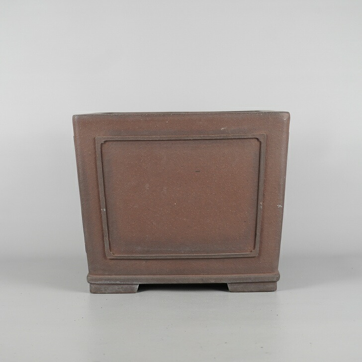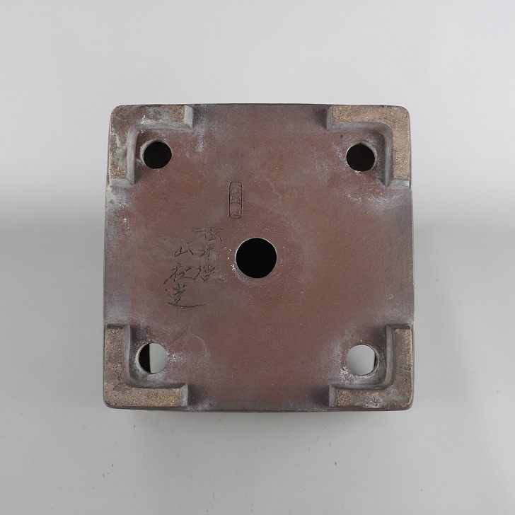 【中古】盆栽鉢 常滑 山秋造 松泉焼 中型 長辺 約 24cm 正方鉢 額付 下帯 泥物 和鉢 現品 中古鉢 收藏