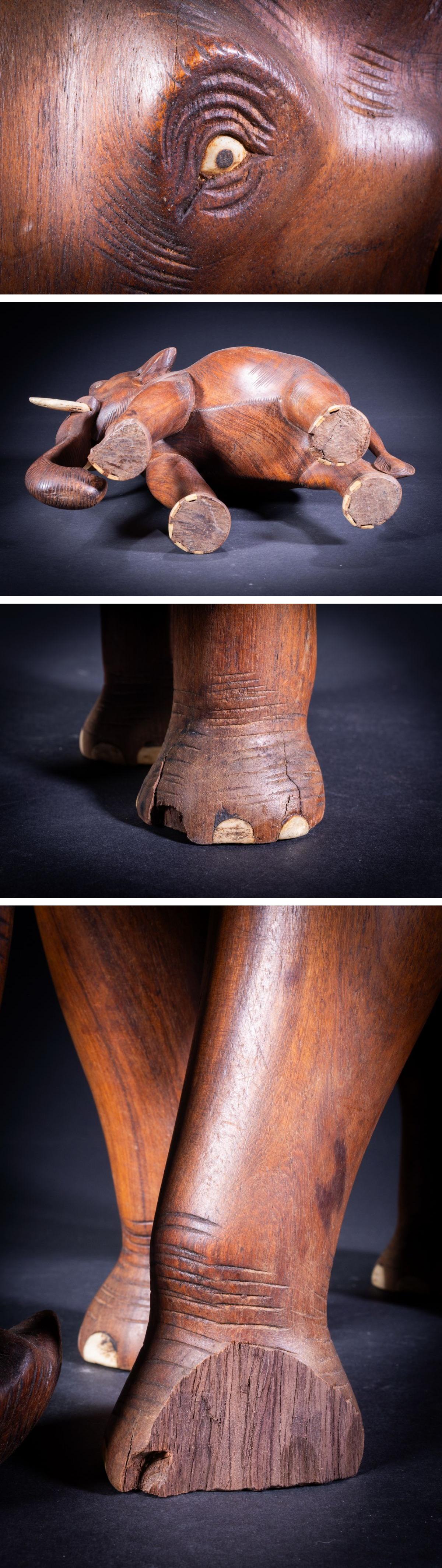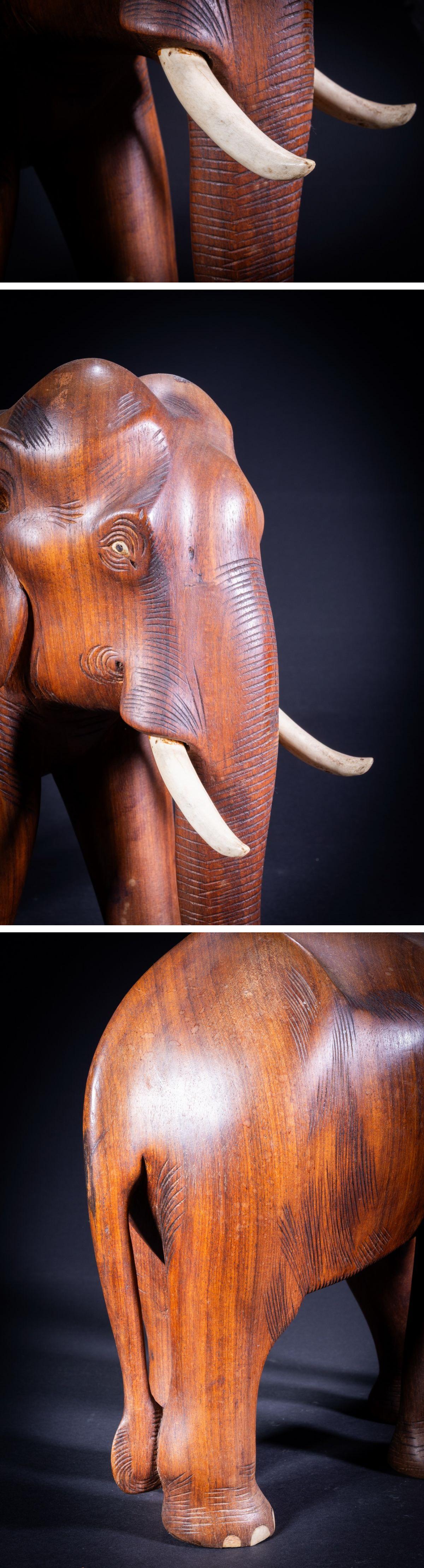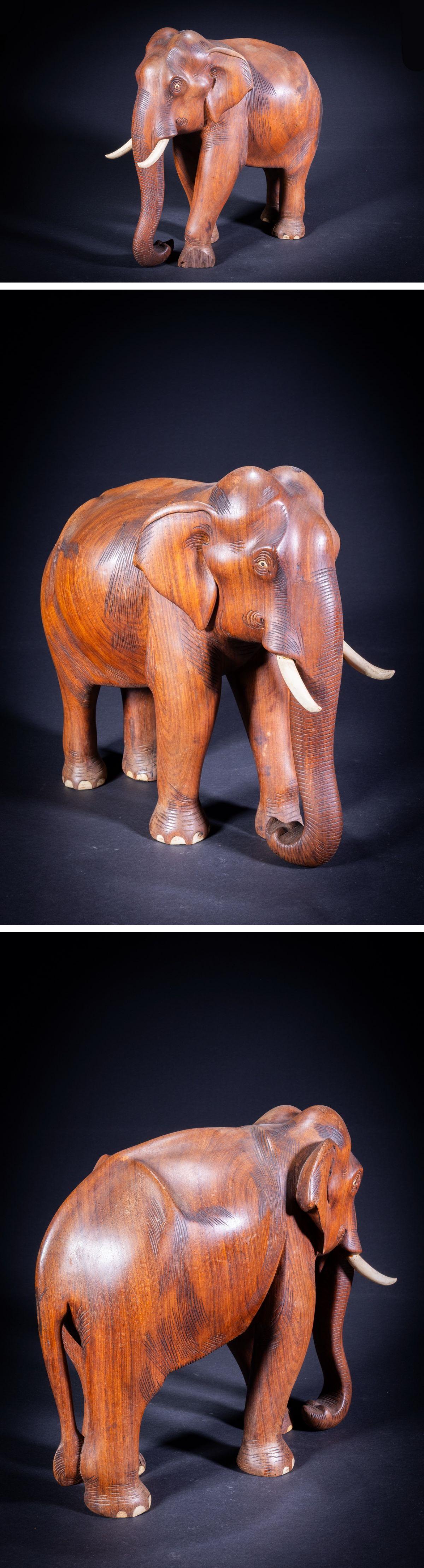 【珍品堂】1円から 木製 象 木彫 ゾウ 置物 縁起物 工芸品 アンティーク ビンテージ H39cm 工芸品 N-A3-O1 收藏