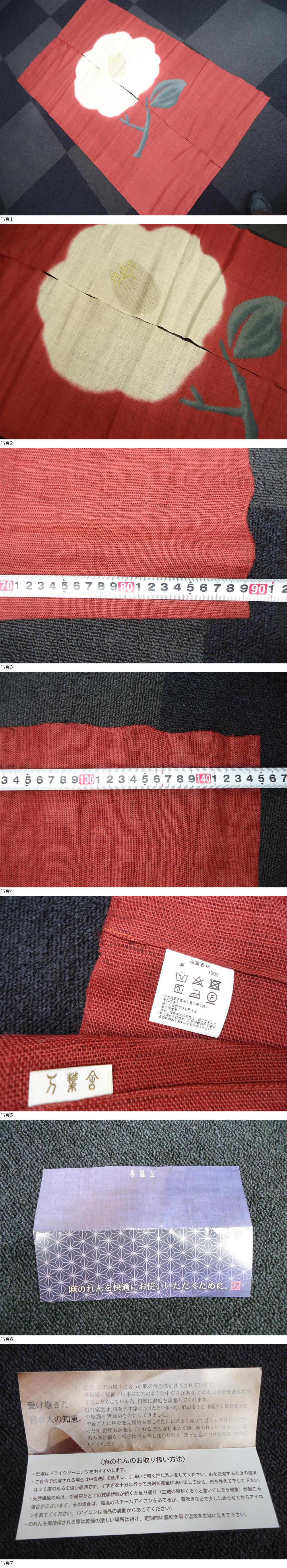 | 4024 インテリア祭 万葉舎 麻のれん 椿 約145×90 | ||||