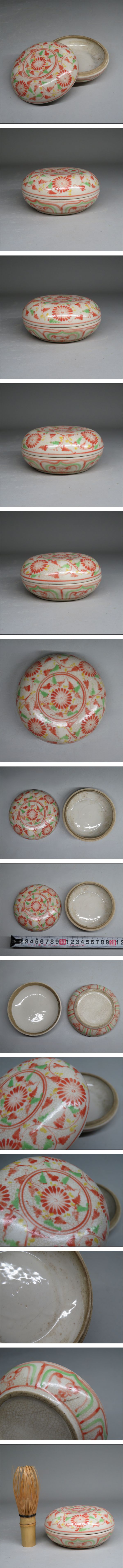 「都内コレクター所蔵品」ベトナム(越南)時代古陶 安南赤絵花文合子 蓋物 紅緑彩 安南焼 東南アジア古陶器 lot:40912 收藏