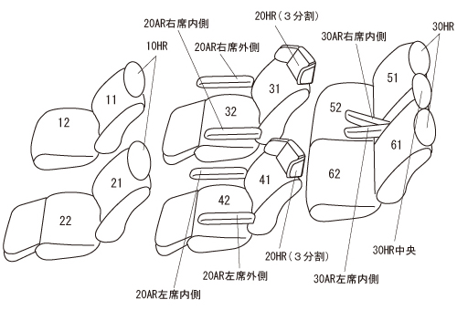 | 適合形状 | 1列目運転席パワーシート・助手席パワーシート&パワーオットマン装備車・2列目エグゼクティブパワーシート ※1列目背もたれハーフカバー ※1列目コンソールBOXカバー無し ※クラッツィオ エアー / クラッツィオ クロス / クラッツィオ クールのみベンチレーション機能に対応しております。 その他のシートカバーを装着するとベンチレーション(送風)機能は正常な効果が得られなくなります。 |