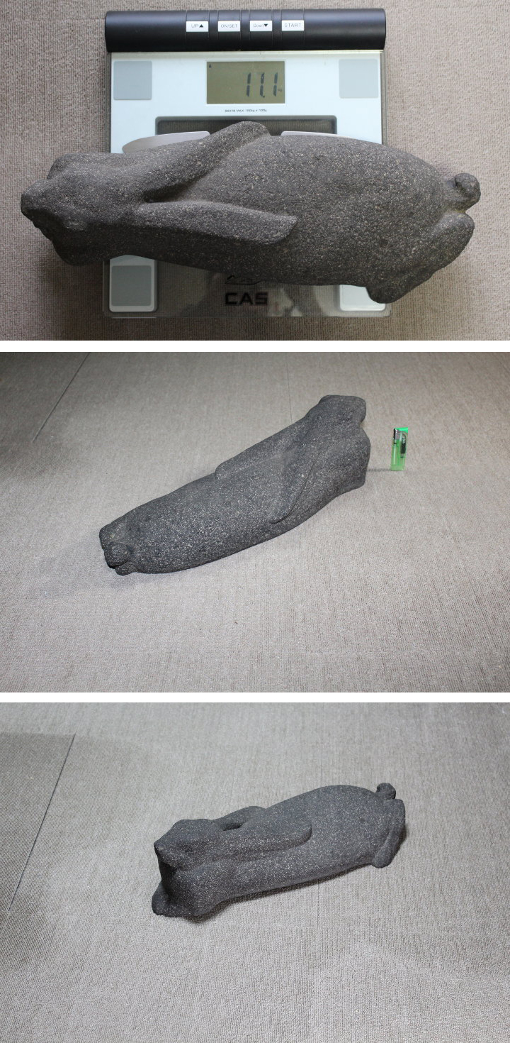 サイズ:最長47.5cm 石の彫刻 ウサギ です。 ズッシリとした重さが安定感を感じます。 可愛いウサギと言うより、ふてぶてしい顔に見えます。 部屋の絨毯の上などが似合いそうです。 目立つ大きな傷みはありません。 写真をご覧の上ご入札宜しくお願い致します。 ※ タイトルの「検」以下は検索ワードです。 出品物と直接関係の無い名称も含まれます。 | |