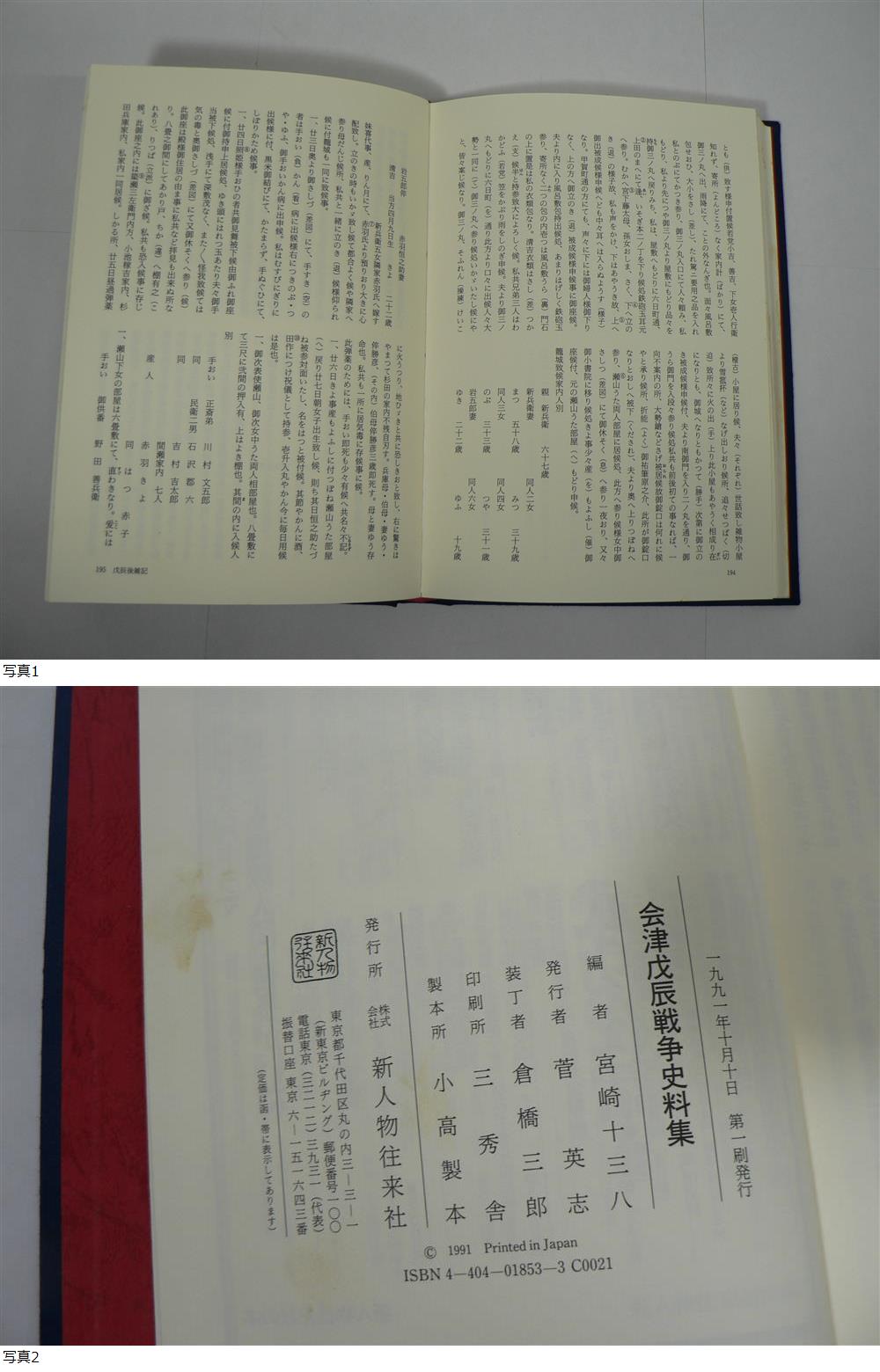『会津戊辰戦争史料集』宮崎十三八編 新人物往来社 1991年 / 会津藩 大砲隊 中軍護衛隊 婦女隊 收藏