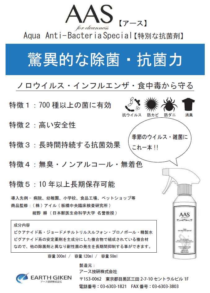 ◆AAS アース(大)◆除菌・殺菌・防カビ・防ダニ・消臭ミスト◆家庭用スプレー AAS300 收藏