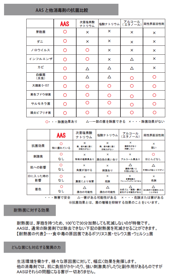 | 成分内容 | ピクアナイド系・ジョードメチルトリルスルフォン ピグアナイド系の安定薬剤を主成分にした複合物で組成されている複合材なので、他の除菌剤と異なり耐性菌の発生を長期間抑制する事ができます。 |