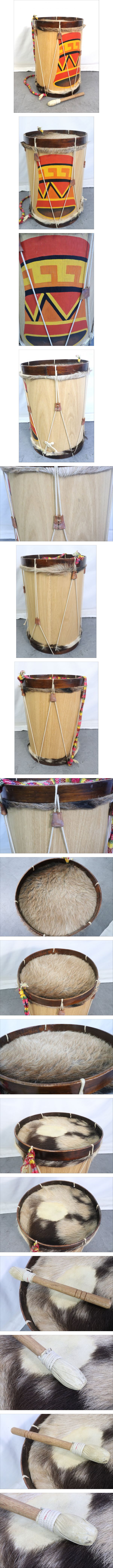 【ト長】ボンボ 民族楽器 太鼓 大太鼓 打楽器 パーカッション 幅約40×高さ約58cm バチ付き 詳細不明 IR938IOS56 收藏
