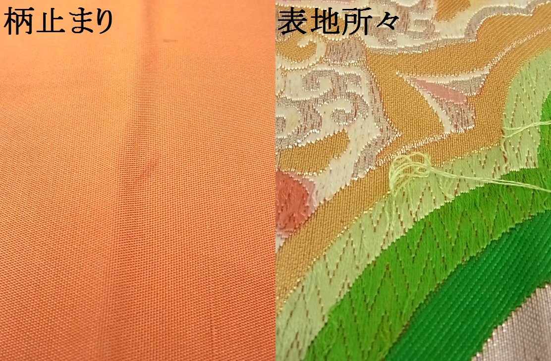 | 正絹・芯なしになります。 状態は接写画像のように表地・裏地所々に薄い汚れがございます。 大変上質な逸品になります。 気になる方はお手入れをされてお召しになられてはいかがでしょうか。 お安く出品致しますので、是非この機会にいかがでしょうか?