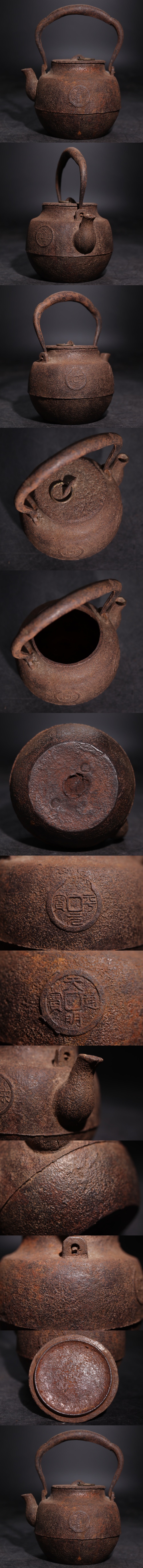 時代 小型 鉄瓶 古銭紋 急須 容量約400ml / 湯沸かし 茶器 煎茶道具 煎茶飾 .G3648 收藏
